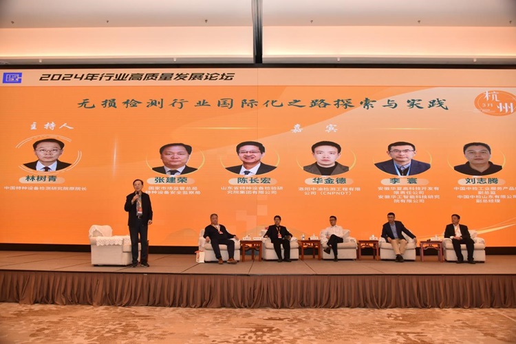 在訪談環(huán)節(jié),以“無損檢測行業(yè)國際化之路探索與實踐”為專題,特邀中國特檢院原院長林樹青擔任主持,總局特種設備安全監(jiān)察局原一級巡視員張建榮等5人擔任對話嘉賓,從海外企業(yè)注冊、海外國家政策、地緣政治風險、經(jīng)營風險、企業(yè)及人員資質(zhì)要求、員工本土化及風險、器材通關政策、國外先進技術裝備和理念等方面進行了深入的交流和探討,并結(jié)合國內(nèi)檢測機構現(xiàn)狀,對國內(nèi)機構走出國外的形勢進行了分析,提出了檢測機構要想走出國門,必須解決小、散、亂和低價、無序競爭狀態(tài),走技術創(chuàng)新、智能化、智慧化高質(zhì)量發(fā)展之路。